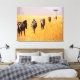 A breathtaking wildlife photograph capturing a group of zebras walking through the golden savanna. This stunning piece embodies the tranquillity and beauty of the African wilderness, making it a perfect addition to any nature-inspired decor.