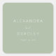 This wedding sticker features a minimalist design with a soft sage green background and light cream text, creating an elegant and serene look. The layout is balanced and symmetrical, with clean sans-serif fonts for the names and a stylish script font for "and," adding a touch of sophistication. Ample negative space enhances readability and visual appeal, making it perfect for couples seeking a modern yet understated aesthetic for their special day.