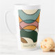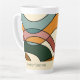 Elevate your coffee ritual with this premium personalized latte mug from the "Serene Savanna Gentle" collection by Cor de Flor Design. This 17oz tall ceramic mug features a sophisticated original abstract wrap with fluid lines in terracotta, forest green, and ochre.
