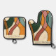 Add a designer touch to your culinary adventures with this personalized oven mitt and pot holder set from the "Serene Savanna Gentle" collection by Cor de Flor Design. This coordinated set features a sophisticated original abstract design with organic flowing lines and a warm, curated earthy palette of terracotta, forest green, and ochre.