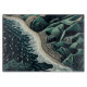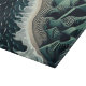 Serene Shores: This stunning top-down illustration captures the harmony of land and sea, featuring waves gently breaking on sandy beaches with lush green mountains in the background. Rendered in soothing shades of dark blue-green, the artwork evokes a sense of tranquility and balance. The intricate detail of the ocean’s patterns meeting the shore, paired with the trees lining the water’s edge, enhances the peaceful atmosphere. Created in a woodcut print style with simple lines and a flat design, the piece is reminiscent of hand-drawn animation, offering a timeless, serene depiction of nature’s beauty.