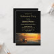 A black and gold retirement party invitation featuring an image of a boat against a sunset.
