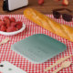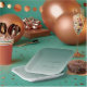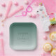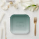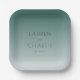This wedding plate features a minimalist design with a gradient background transitioning from dark teal to light mint green, creating a serene and elegant atmosphere. The clean, sans-serif typography is centred in a balanced layout, emphasizing the names "Lauren and Charlie" along with a date, all set against a calming colour palette of soft greens. Perfect for formal occasions, this design exudes sophistication and tranquillity, making it an ideal choice for weddings or significant celebrations where understated elegance is key.