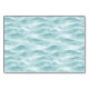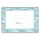 This wedding place card features a serene coastal theme with an ocean wave pattern in shades of turquoise and aqua, creating a dynamic yet calming effect. The central white space is bordered by a light blue line, providing a clean area for customization, while the word "table" is elegantly written in a delicate cursive script. The minimalist design balances negative space effectively, evoking a tranquil and inviting atmosphere perfect for beach-themed weddings or any event seeking a sophisticated and understated look.