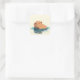 This charming sticker features a peaceful capybara wading through calm, reflective water. The digital illustration utilizes a soft, painterly texture with warm ginger-orange fur and deep brown accents on the ears and nose. A beautiful watercolor-style reflection ripples beneath the animal, set against a clean, minimalist off-white background that emphasizes the tranquil mood. This delightful decal is perfect for personalizing your laptop, water bottle, or journal. It adds a touch of calm and personality to any smooth surface, making it an ideal choice for fans of these gentle giants.
