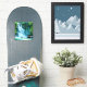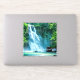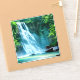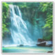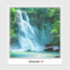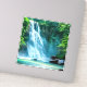 Sticker in an illustration of a cascading waterfall in pale blue with white spray, surrounded by boulders and green leaves