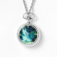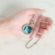 Pendant watch in an illustration of a cascading waterfall in pale blue with white spray, surrounded by boulders and green leaves