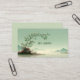Define your brand with unmatched tranquility and ethereal beauty using this captivating business card. The design centers on a breathtaking Asian-inspired waterscape, where misty, layered mountains fade into a hazy, pale sage green sky. The foreground is dominated by a peaceful, reflective lake or body of water. A delicate white climbing rose bush arches gracefully over the water from a rocky shore, complemented by a pop of contrasting deep red foliage at its base. The expansive water and sky create a minimalist, open space for your information. This artwork beautifully captures the quiet solitude of a hidden Zen garden, resulting in a unique and sophisticated brand statement that conveys peace and natural elegance. This business card is ideally suited for a spiritual advisor or wellness coach emphasizing calm and nature, a boutique travel agency promoting scenic mountain or Asian-inspired retreats, or a fine art print seller specializing in serene, atmospheric works. It would also perfectly suit a landscape architect whose focus is on peaceful, artistic garden designs, or a tea room proprietor looking to convey a refined, peaceful experience.