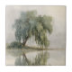 Ceramic Tile - Calming watercolor willow tree with soft green foliage and peaceful lake reflection. Ideal for nature lovers, mindfulness seekers, and those who love tranquil, relaxing scenery.