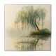 Ceramic Tile - Calming watercolor willow tree with soft green foliage and peaceful lake reflection. Ideal for nature lovers, mindfulness seekers, and those who love tranquil, relaxing scenery.