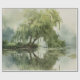 Wrapping Paper - Calming watercolor willow tree with soft green foliage and peaceful lake reflection. Ideal for nature lovers, mindfulness seekers, and those who love tranquil, relaxing scenery.