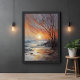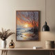 This stunning AI-generated artwork glossy poster print captures the calm and ethereal beauty of a winter sunset. The delicate blend of soft oranges and muted purples creates a mesmerising sky as the sun gently fades over a frosty, quiet landscape. With its bare trees silhouetted against the horizon and reflections dancing on the frozen ground, this piece evokes a peaceful, reflective atmosphere that is perfect for any room in your home. Its minimalist yet detailed nature makes it an ideal addition to modern, contemporary, or nature-themed decor. This artwork offers a unique and modern take on traditional nature landscapes. The subtle textures and cool tones make this piece stand out, providing an elegant and serene vibe to any space. Ideal for buyers who appreciate peaceful and calming decor, this wall art is perfect for relaxation spaces, bedrooms, or meditation rooms. It also makes an excellent gift for housewarmings, birthdays, or anyone who loves nature-inspired art.