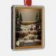 A minimalist Christmas scene featuring a golden waterfall, symbolising serenity and power. Subtle holiday elements like a decorated tree, ornaments, and a snowman blend with a soft textured background, creating a peaceful and festive atmosphere. "Original Image was generated by Meta AI. AI generated artwork. Licensed under CC BY-SA 4.0."