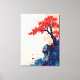 This artwork beautifully portrays a striking red bonsai tree perched on a rugged cliff, surrounded by an abstract blend of vibrant blue and red splatters. The contrast between the delicate foliage and the jagged rock formation symbolises the harmony between strength and fragility in nature. Inspired by minimalist and Japanese aesthetics, this piece exudes tranquillity and balance, making it a perfect centerpiece for meditation spaces or art enthusiasts who appreciate serene and vibrant designs.