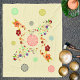 Little bouquets of vibrant flowers in orange, yellow, and neutral tones add a pop of colour and personality to the design, creating a truly unique and personalised touch.