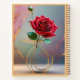 This design features the graceful outline of a minimalist vase cradling a vibrant rose, symbolising the profound beauty found in simplicity. The delicate interplay of light colours in the background enhances the quiet drama of the solitary flower, while subtle gold accents add a touch of sophistication, creating a serene yet striking visual statement.