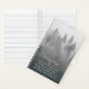 Spiral bound notebook with front and back covers that feature the photo image of a misty and foggy, evergreen forest. Front cover includes the inspirational words of the Serenity Prayer printed in white, stylised text. Great for use as a journal or for keeping notes. Select your notebook style options.