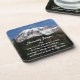 Protect your table top from water marks and stains from drinks with this set of 6, plastic beverage coasters with cork backs that feature a scenic photo image of snow capped, majestic Mount Rainier with the inspirational words of the Serenity Prayer.