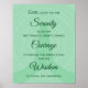 Elegant print of the serenity prayer over a green background with a subtle mandala pattern and hands in prayer or namaste (Anjali) mudra position. 11x14 size print. We also have an 8x10 print and different color versions available.