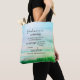 Serenity Prayer tote bag depicts a nature scene with the sun setting over a meadow. It features the beloved prayer, "God, grant me the Serenity to accept the things I cannot change; Courage to change the things I can, And the Wisdom to know the difference."