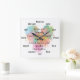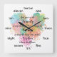 Create a mindful gift for yourself or another with this Serenity Prayer text design on a wall clock. Created in elegant script typography overlaid on a pastel abstract digital watercolor style heart. The hours on the face are spelled out in text instead of numerals (ie "twelve"