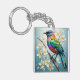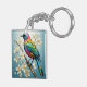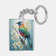 A vibrant, multicolored bird stands gracefully on a slender branch, surrounded by delicate white flowers. The intricate design showcases the bird"s radiant plumage, while the soft blooms add a touch of elegance, evoking a sense of peaceful tranquillity.