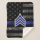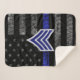 Sergeant Stripes Thin Blue Line Distressed Flag Sherpa Blanket