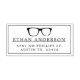 A funny and lighthearted yet proffesional address ink stamp featuring a pair of retro glasses followed by your name and details in a classic style font under it.