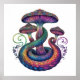 Enchant your decor with the Serpentine Mushroom Enchantment print. This piece features mushrooms intertwined with a colourful serpent, blending fantasy and nature in a captivating and mystical design.