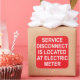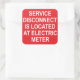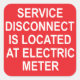 A sheet of six, 3" x 3" SERVICE DISCONNECT LOCATED AT ELECTRIC METER sticker labels for electricians to identify the main disconnect for a residential sub-panel.