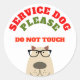 Cute illustration of a Labrador Retriever wearing glasses, This breed is often used by people who are blind or visually impaired. Text above the dogs head reads: "Service dog, Please do not touch"