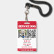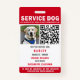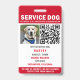 A vertical service dog QR code ID badge ensures quick identification, featuring the service dog's photo, name, and ID number in capital lettering on a white and red background. The badge includes a QR code that links to detailed information or verification. The back includes contact details in case the badge is lost, ensuring it can be returned promptly. This design provides essential information at a glance, making the service dog easily identifiable and authenticated.