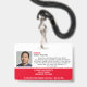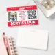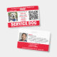 A service dog QR code ID badge ensures quick identification, featuring the service dog's photo, name, and ID number in capital lettering on a white and red background. A QR code links to detailed information or verification. The back includes the handler's photo and name for easy verification, along with contact details in case the badge is lost. This design ensures the service dog's role and handler's information are clearly communicated and protected.
