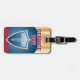Service dog tag with blue, red, and gold includes a shield design with a caduceus medical symbol, a blue starburst background and gold embellishment.