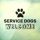 Black and transparent service dogs welcome window cling or sign with a pet paw for any business, retail, store, coffee shop, cafe, restaurant, barber, salon, hotel, bakery, etc.