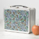 This is a standard metal lunchbox that appears to work just fine. We designed this box ourselves with an uploaded photo and custom text on the front and back. It looks absolutely beautiful except the front of the lunchbox is not centered like it shows in the photo. The print borders don't align with the inset flat part of the box where the preview photo online showed it perfectly centered in there. The back looks nice and centered though.