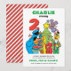 Celebrate your little one's special day with this fun Sesame Street birthday invitation featuring Elmo, Cookie Monster, Bert, Ernie, and Abby Cadabby decorating a Christmas tree. Perfect for a festive birthday celebration, this card combines holiday cheer with a birthday message. Customise with your child's name, age, and party details to make it uniquely theirs. With a vibrant red and white candy cane-striped border, it’s sure to make a delightful impression on guests.