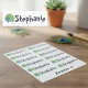 Adorable little peacock with name labels. Set of twelve small stickers with your name or a personalized word on them. They are decorated with a cute illustration of a green and blue peacock. Great for marking your electronics, notebooks, pens, drinkware, or any other personal possessions.
