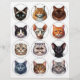 Set of 12 Pretty Round Illustrations of Cat Breeds