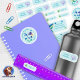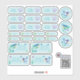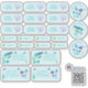 Charming waterproof school stickers for kids. Set of 24 different square and round name stickers, mermaid theme with fish, starfish, and seashells.