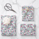 Set of 3-Boho Floral Pattern in Pink, Taupe & Teal Wrapping Paper Sheet