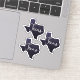Just like the stars at night in Texas, this state shape features a night sky blue state with a sprinkle of glittery stars. A classy, elegant design with the word "Texas" cut out of the centre. Perfect for coordinating decor or just a unique and lovely way to show off your state love. Matching products available. On the extra-small sheet, each sticker is about 1.5" wide.