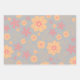 Set of 3 Unique Retro Flower Wrapping Paper Sheets. A mix and match of grey colour with burgundy colour and white colour, perfect for those who love neutral colours. Trendy, modern and elegant with the vintage orange colour floral pattern.