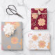 Set of 3 Unique Retro Flower Wrapping Paper Sheet
