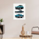 Infuse your space with nostalgia through this beautiful graphic showcasing three vintage cars in retro hues. Its striking yet classic design beautifully embodies the allure of classic automobiles and vintage styles, making it a must-have for any car enthusiast or lover of retro decor.