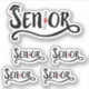 Your senior year is ending. Celebrate with this design featuring the word senior with a graduation cap and diploma. On the extra-small sheet, the large sticker is about 2.5" wide, the small ones about 1.75".