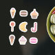 9 Dessert & Sweet Treats with lollipop, ice cream cone, macaron, french croissant, cupcake, candy for big foodies.
