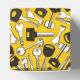 Seamelss yellow background with keys and custom text.