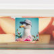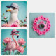 Set of stickers, seagull camera, flamingo blue bac