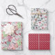 Charming Christmas wrapping paper sheet set of three coordinating holiday designs:
